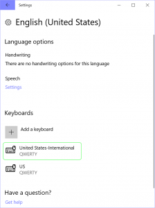The great thing is: You can choose from several English keyboard layouts. The most common is obviously the US English one. In Europe, however, you will find a lot of UK ones. Up to that point I went through the US standard and the UK one. There is, however, also the US International layout, which you can add as a keyboard option easily: